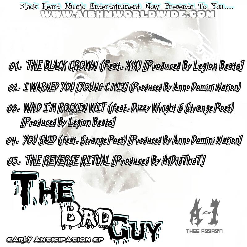With all this firepower at A-1's disposal, he's aiming to explode onto the mainstream scene with his signature sound and finally place himself and his company, Black Heart Music Entertainment, in the upper echelon of this musical "secret society" alongside other Hip-Hop royalty. And this new album THE BAD GUY just might be his ticket to that mainstream paradise.